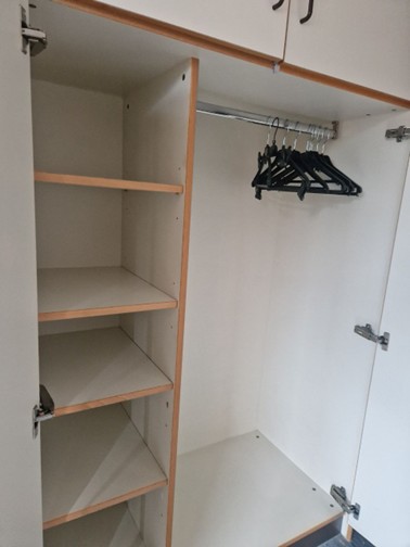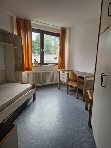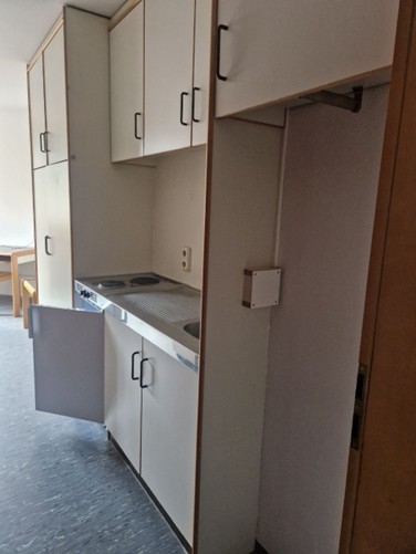 All rooms include a small kitchen area, a bunch of cabinets, a wardrobe, a bed including mattress, a wooden desk and a private bathroom including a shower.